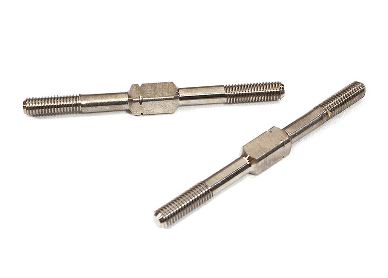 For ultimate strength, light weight, and adjustability replace your stock steel turnbuckles with our Billet Machined Titanium Turnbuckles. These titanium turnbuckles are designed to be replacements to fit most 1/10 on-road and off-road vehicles. The Billet Machined Titanium Turnbuckles are sold in pairs, in various sizes.