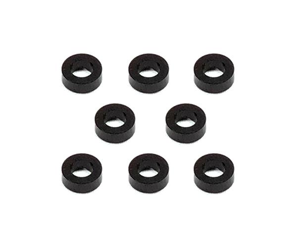 This is a pack of eight Aluminum ball stud washers by SQUARE R/C. These washers are available in various colors from 0.5mm to 5mm thicknesses. Item# SQ-SGE-920BK Barcode: 4543880100898