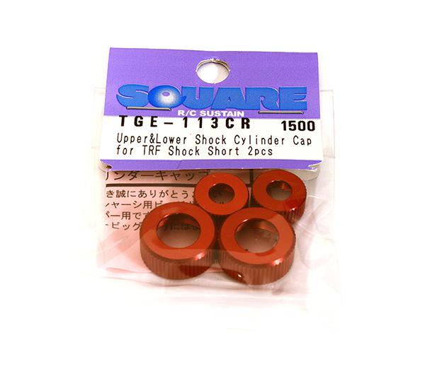 These are Aluminum upper and lower damper Cylinder Caps by SQUARE R/C. Sold in pairs, these are the thin version for most Tamiya chassis, in red (2 pcs.) Item# SQ-TGE-113CR Barcode: 4543880516347