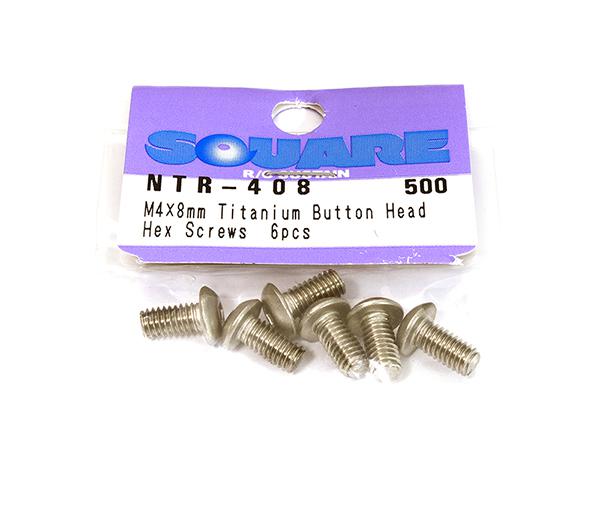 This is a pack of six 4 x 8mm Titanium button head hex screws by SQUARE R/C. Made in Japan with high quality, high rigidity at about half the weight compared with standard hardware. Item# SQ-NTR-408 Barcode: 4543880402480