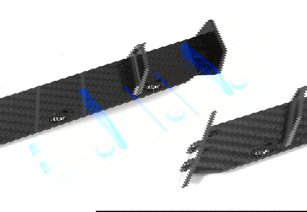 Increase the performance of your Traxxas 1/10 Rustler 2WD by upgrading to our Carbon Fiber Rear Aero Wing Kit. Unlike the OEM Traxxas wing, our wing is made from light but rigid carbon fiber to increase high-speed downforce. Designed as a bolt-on upgrade, our wing replaces the OEM wing (included with Traxxas OEM part #3721) and requires no modifications for installation. The Carbon Fiber Rear Aero Wing Kit is available in a carbon fiber finish with four color trim options.