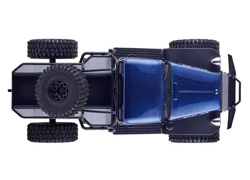 The Atlas 4X4 RX has a 340mm wheelbase and is equipped with 120mm outer diameter crawler tires that give the machine 79mm of ground clearance. The 1/10 Atlas 4X4 RS RTR Crawler is available in three colors. NOTE: The chassis is partially assembled, and requires 4xAA Batteries for Transmitter and a main battery for chassis (we recommended a 2S LIPO, at least 5000mAh with an XT60 plug).Features: