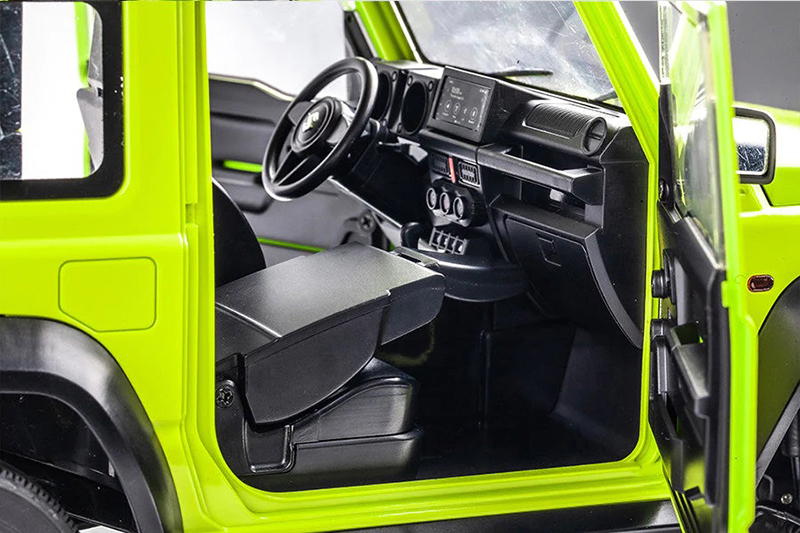 To create this officially licensed RC version of the 2021 Jimny, FMS engineers faithfully reproduced the full-size vehicle’s design & detail in versatile 1/12 scale. By including unexpectedly accurate features like a foldable rearview mirror, the FMS Suzuki Jimny marks a new high standard for RC realism. Its elaborate light system raises the bar even higher. Full-function LED headlights offer low & high-beam options, as well as working turn signals, fog lights, and brake lights.CHIC INTERIOR