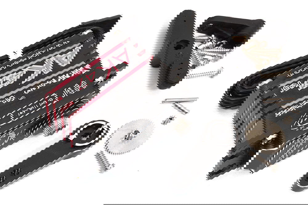 Pulse Width: 500μs-2500μs =180° Operating Speed (6V): 0.1s/60° Operating Speed (7.4V): 0.08s/60° Operating Speed (8.4V): 0.07s/60° Stall Torque(6.0V): 40kg-cm Stall Torque(7.4V): 45kg-cm Stall Torque(8.4V): 47kg-cm Motor: Brushless Dead band: 2μs Ball Bearing: 2pcs Working Frequency: 1520μs/330hz Dimensions: 40x20x39mm Weight: 77g Item# C32847 Barcode: 91789045117