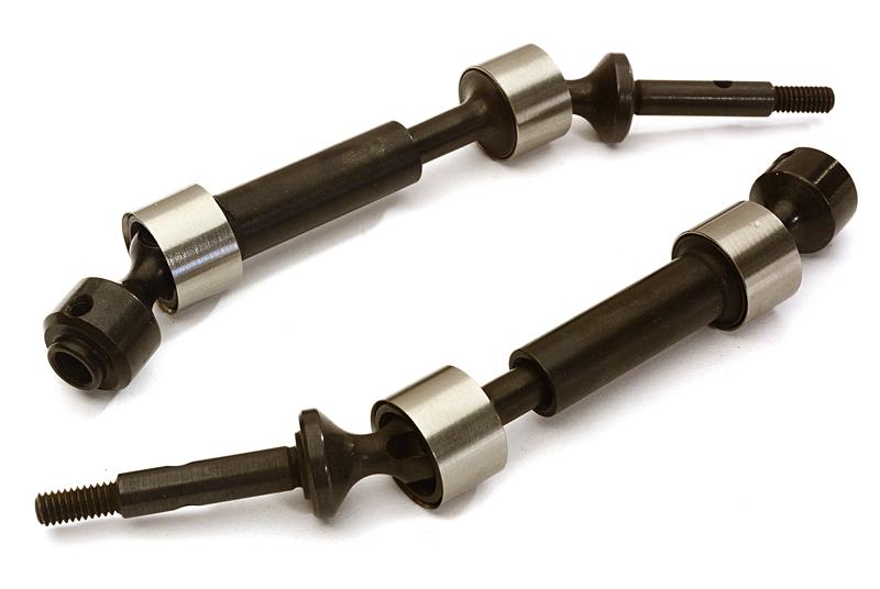 Strengthen the drivetrain of your 1/10 Slash 2WD or 1/10 Nitro Slash with our HD Steel Rear Universal Drive Shafts. The Drive Shafts feature a sliding design with heavy duty universal joints and anodized alloy collars. Sold in pairs, the HD Steel Universal Drive Shafts are available in even colors (also compatible with 1/10 Rustler 2WD and Nitro Rustler).