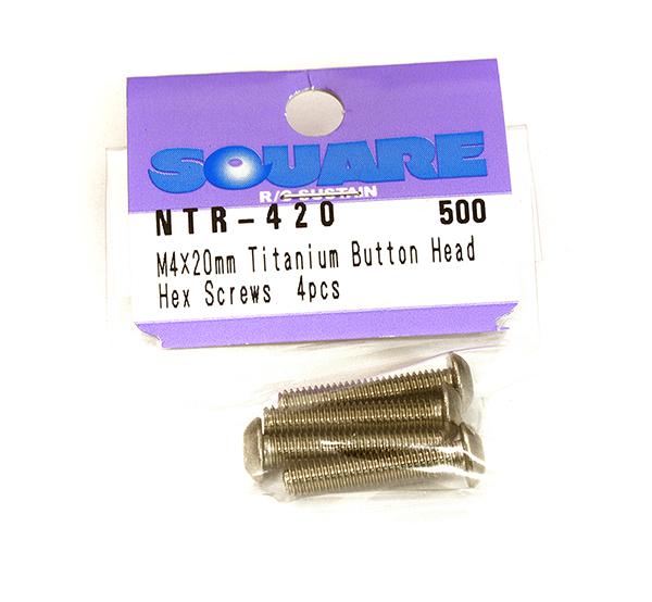 This is a pack of four 4 x 20mm Titanium button head hex screws by SQUARE R/C. Made in Japan with high quality, high rigidity at about half the weight compared with standard hardware. Item# SQ-NTR-420 Barcode: 4543880401889