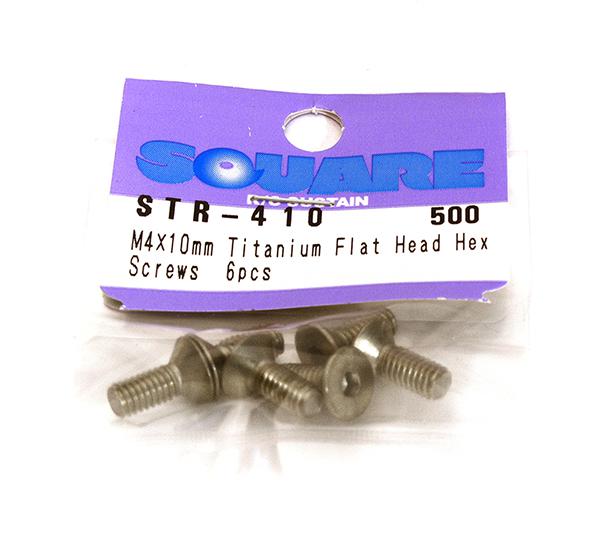 Introducing the Square R/C M4 x 10mm Titanium Flat Head Hex Screws, a must-have for RC car enthusiasts aiming to elevate their vehicle's performance. This set includes six meticulously crafted screws, made in Japan from premium titanium. Renowned for their exceptional strength and rigidity, these screws are about half the weight of conventional hardware, making them an ideal choice for those seeking to reduce weight without compromising durability. Designed with precision engineering, these flat head hex screws ensure a perfect fit, enhancing both the efficiency and lifespan of your RC model. Whether you're racing or just enjoying a leisurely drive, these screws provide the reliability and performance you need. Item Number: SQ-STR-410.