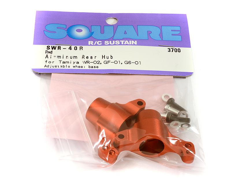 This is an Aluminum rear hub by SQUARE R/C. Fitment is for the Tamiya GF-01, City Turbo and WR02, and is available in red. Item# SQ-SWR-40R Barcode: 4543880515135