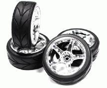 5 Spoke Complete Wheel & Tire Set (4) Wide Offset for 1/10 Touring Car