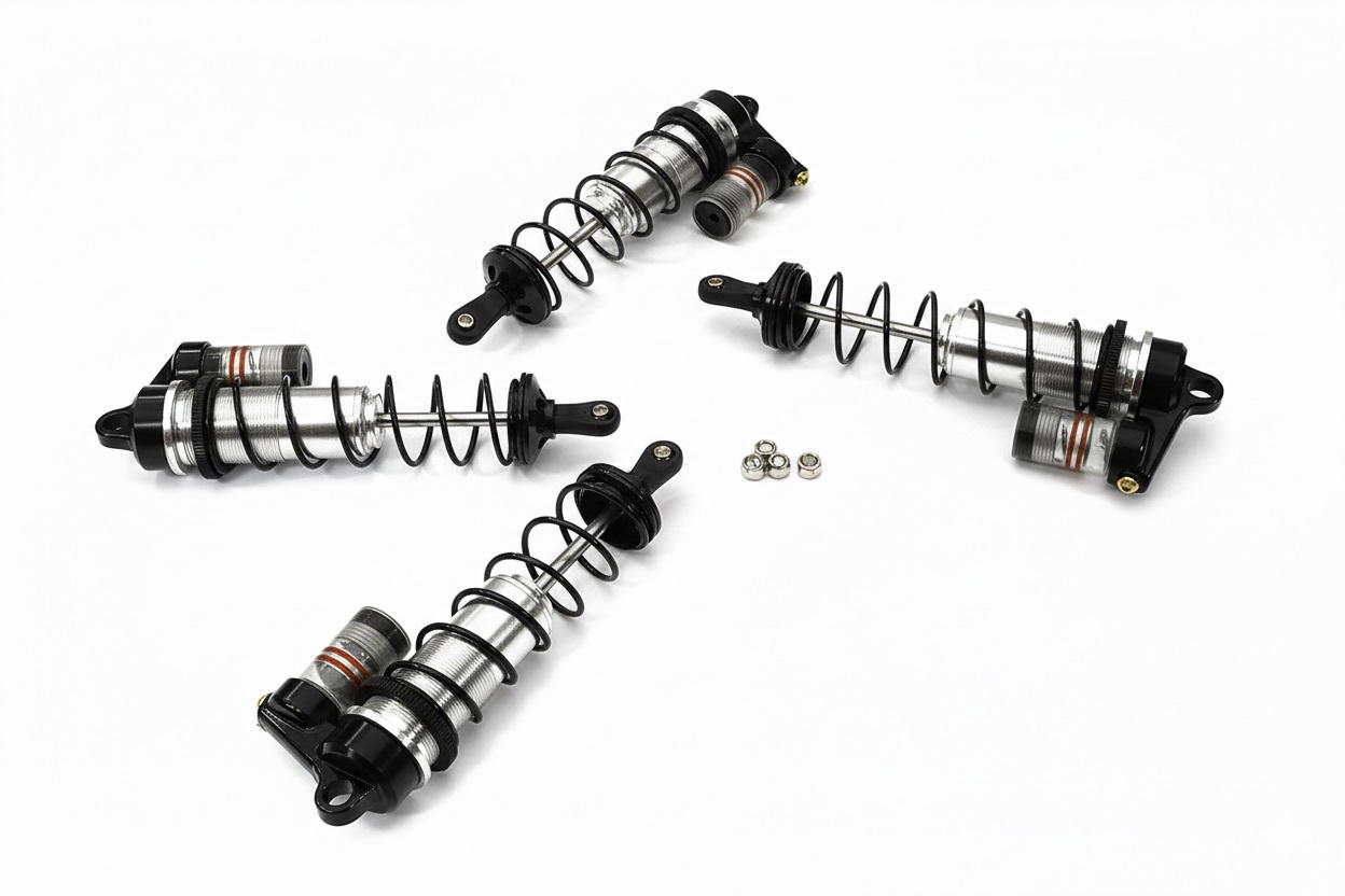Upgrade the suspension of your Arrma 1/8 Outcast or Kraton 6S BLX with our Billet Machined Piggyback Shocks. These shocks feature threaded alloy shock bodies, adjustable alloy pre-load collars, single stage springs, reservoir bleed ports, captured steel pivot balls, and piggyback reservoirs that are transparent to allow you to see the rebound preload. Each set includes a pair of 118mm front shocks and a pair of 134mm rear shocks, and are designed as a bolt-on upgrade for the Arrma OEM part #ARA330621 and #ARA330622. Sold in sets of 4, the Billet Machined Piggyback Shocks are available in six colors.