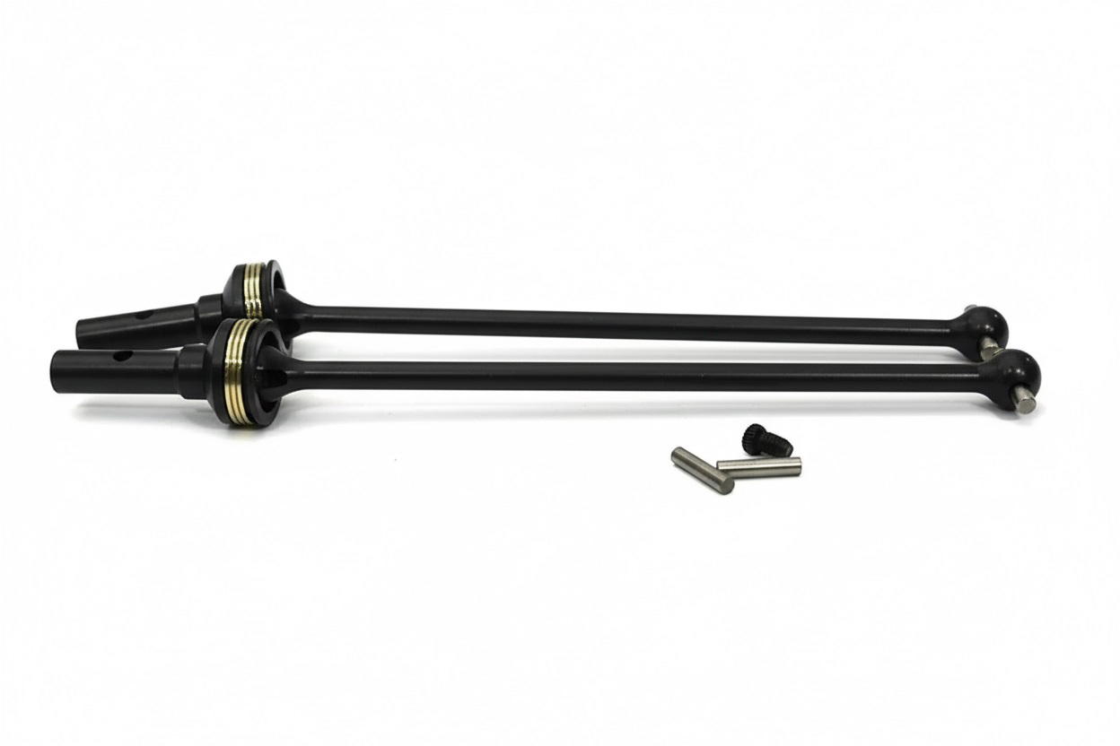 Reinforce the front end of your 1/8 Sledge 4WD truck by installing our Billet Machined Universal Front Drive Shafts. These front Drive Shafts feature a heavy-duty stub axle and dogbone, CV-style universal joint, steel diff output cross pins, metal snap-on joint pin retainers, and new hex drive pins. The Billet Machined Universal Front Drive Shafts are sold in pairs in black only. Elevate your RC experience with our premium Billet Machined Universal Front Drive Shafts, specifically designed for Traxxas 1/8 Sledge 4WD. These hop-up parts are engineered to perfection, ensuring enhanced performance and durability for your model. Crafted from high-quality materials, they provide a seamless fit for the 1/8 Sledge 6S, allowing for an upgrade that's both visually striking and functionally superior. Whether you're a hobbyist or a competitive racer, these precision-made components are an essential addition to your collection. Enhance your stock Sledge with these must-have accessories and take your racing to the next level. Don't forget to keep the item's barcode, 91789046213, handy for easy reference and inventory management.